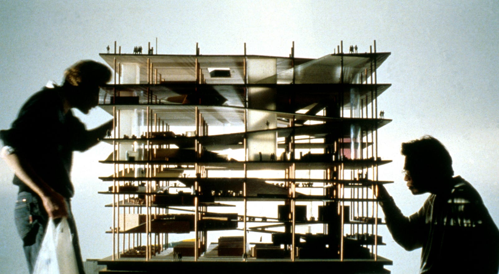 Although the plates exist within a defined grid, their relative positions, rhythms, and overlaps are constantly in flux, invoking the latent dynamism within the traditionally static typology of a library.